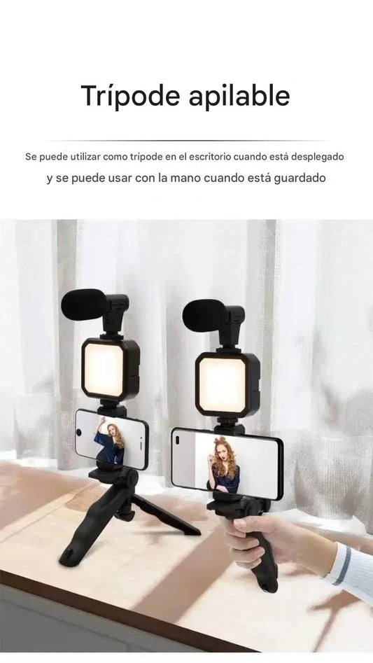 Kit para teléfono inteligente con trípode, soporte para teléfono, Mini micrófono, luz de relleno LED, arrancador para TikTok, transmisión en vivo, vídeo, YouTube