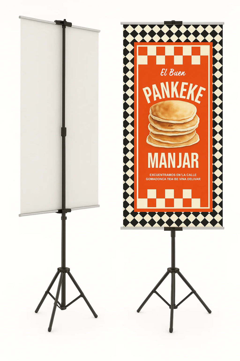 Disponible en versiones de 1 o 2 piezas. Se puede extender hasta 211,99 cm. Ideal para restaurantes, cafeterías, bares, food trucks y eventos gastronómicos, este soporte versátil permite presentar carteles, señalización o menús de forma clara y profesional.