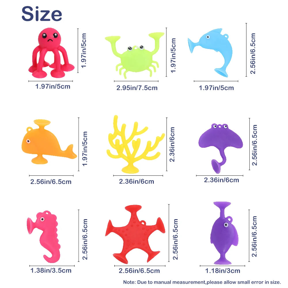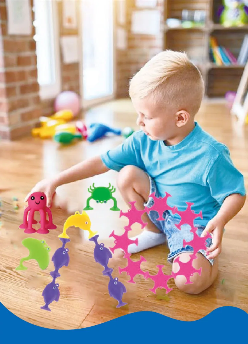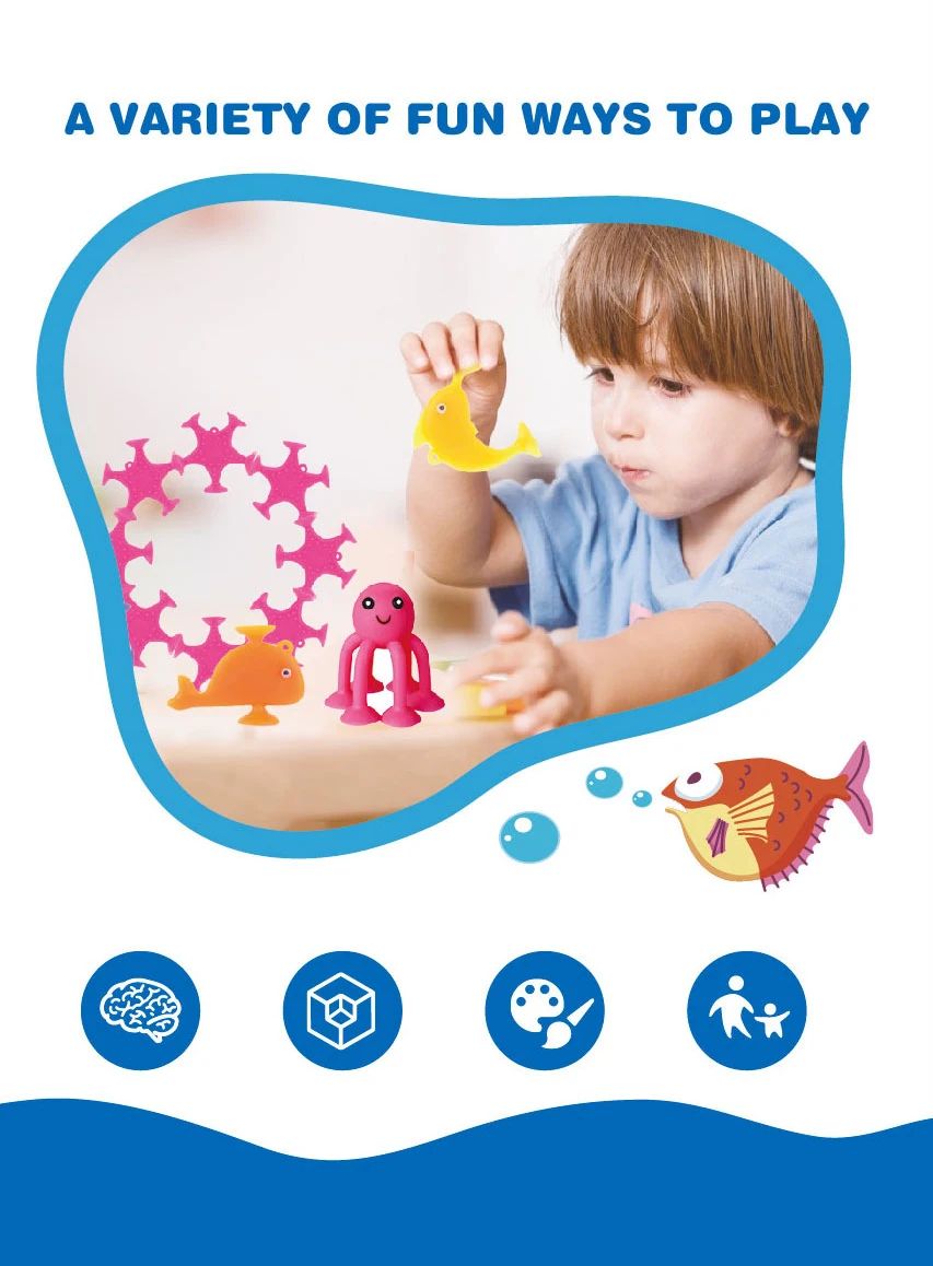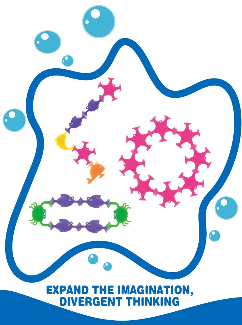 Estos juguetes de animales marinos con ventosas están diseñados para estimular la creatividad y la coordinación de los niños mientras juegan de forma segura. Gracias a sus ventosas suaves, pueden adherirse a superficies lisas como azulejos, ventanas, bañeras o mesas, convirtiendo cualquier espacio en una zona de construcción y diversión.